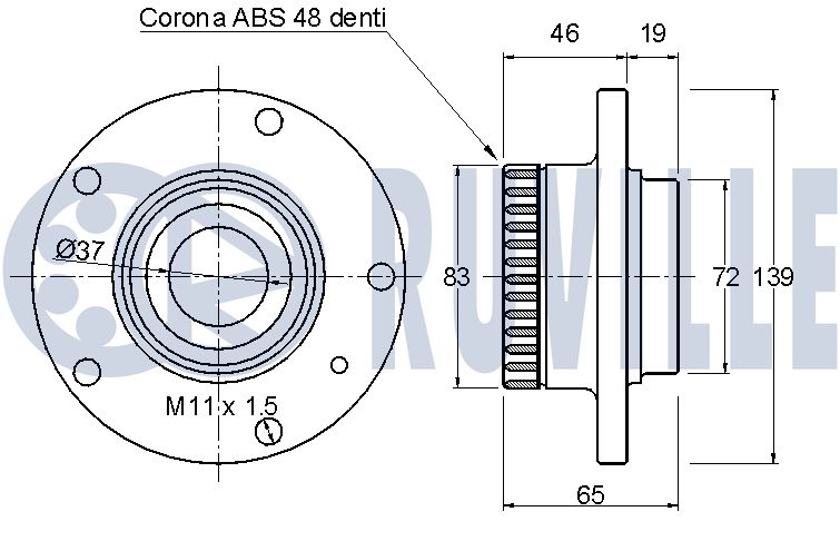 Технічні характеристикиКомплект колісних підшипників 221191 RUVILLE
