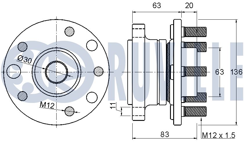 Технічні характеристикиКомплект колісних підшипників 221273 RUVILLE