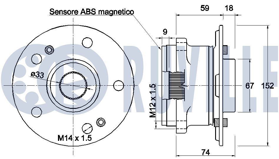Технічні характеристикиКомплект колісних підшипників 221704 RUVILLE