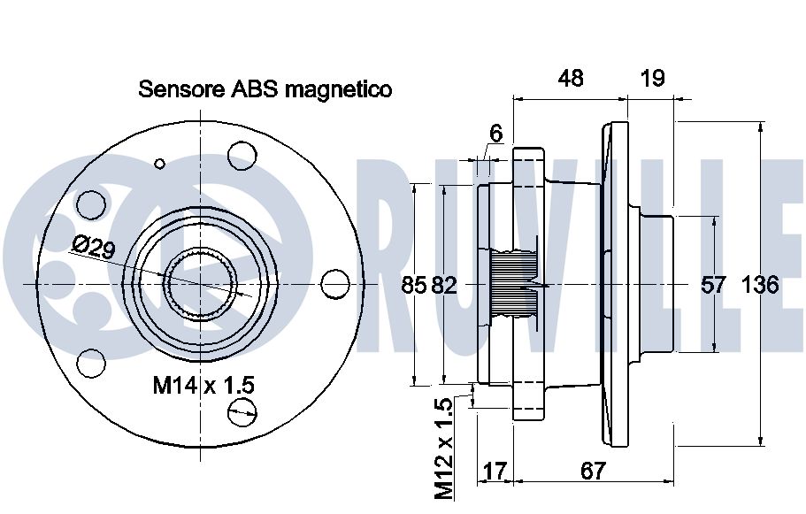 Технічні характеристикиКомплект колісних підшипників 221784 RUVILLE