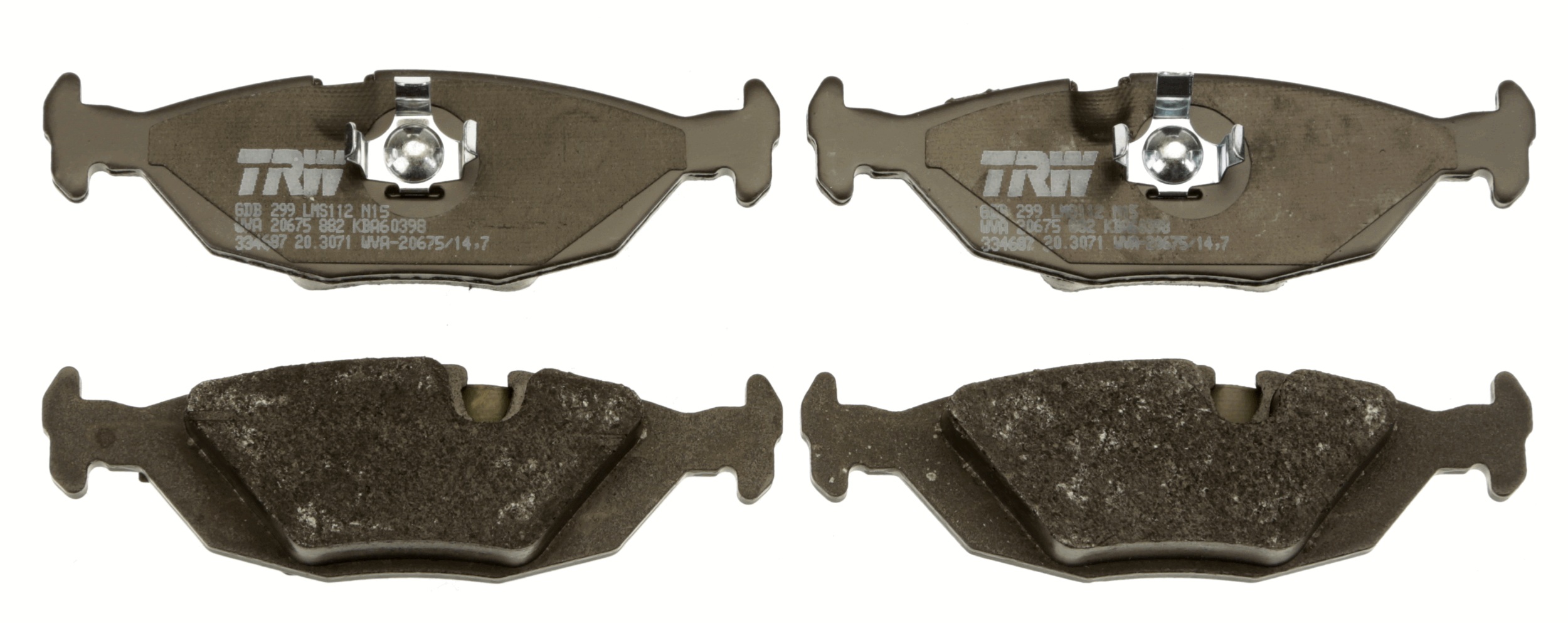 Технічні характеристикиКомплект гальмівних накладок, дискове гальмо GDB299 TRW