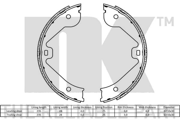 Технічні характеристикиКомплект гальмівних колодок, стоянкове гальмо 2747723 NK