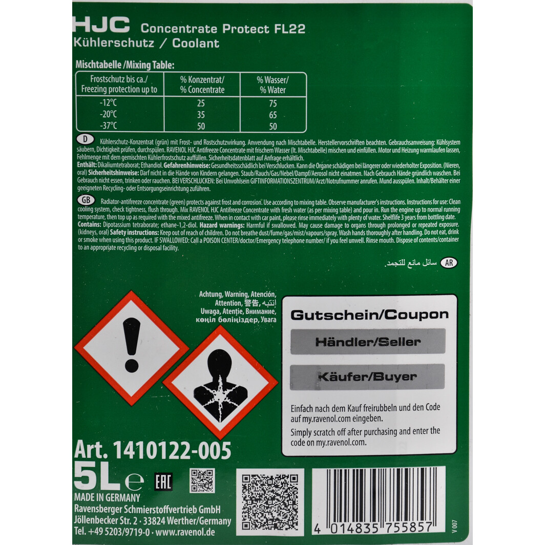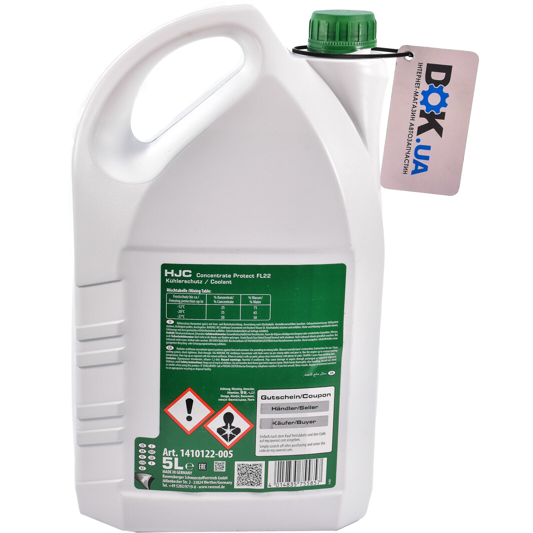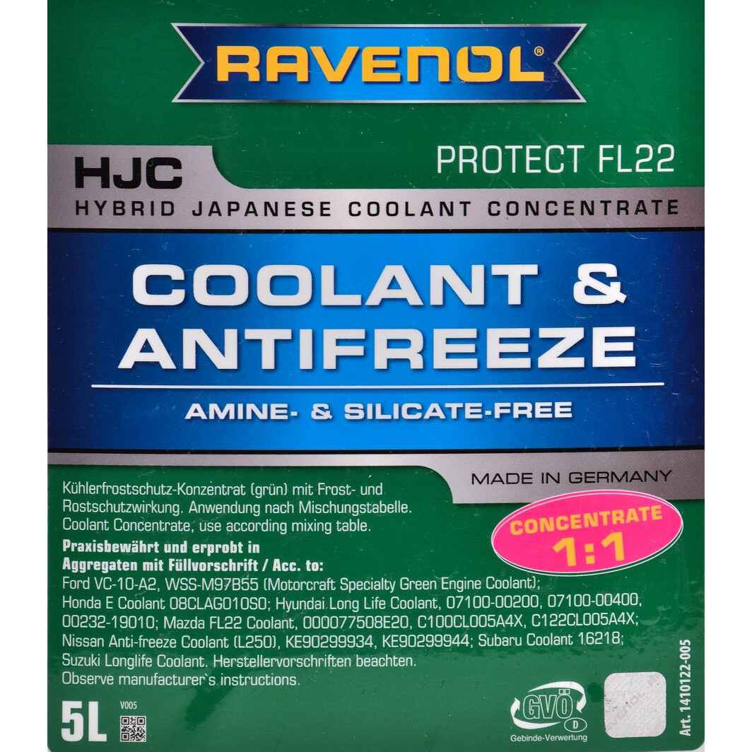 Технічні характеристикиАнтифриз RAVENOL G11 зелений, концентрат, 5 л, 1410122-005