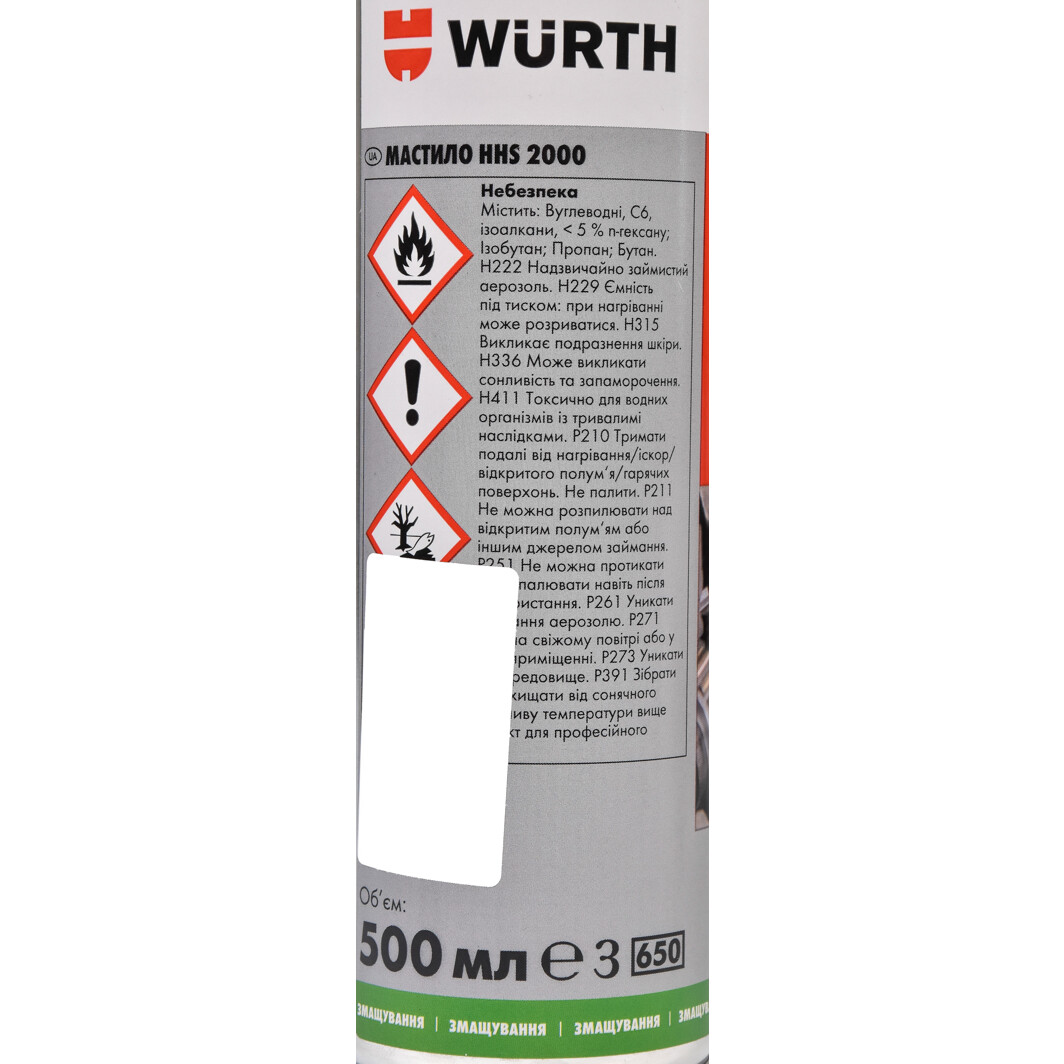 Технічні характеристикиМастила автомобільні 893106 WÜRTH