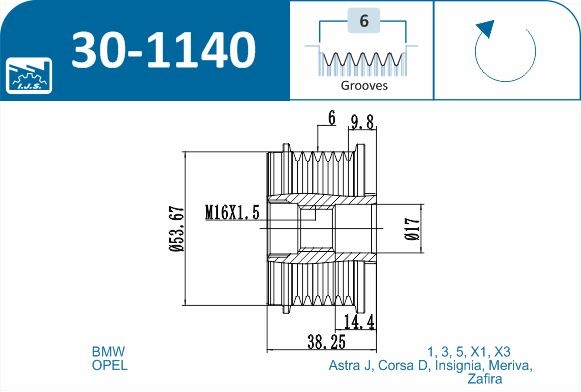 Аналоги і збігаються кодиМеханізм вільного ходу генератора 30-1140 IJS GROUP