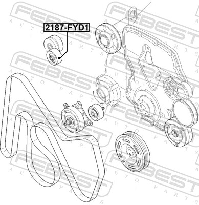 ЗастосуванняНатяжний ролик, поліклиновий ремінь 2187-FYD1 FEBEST