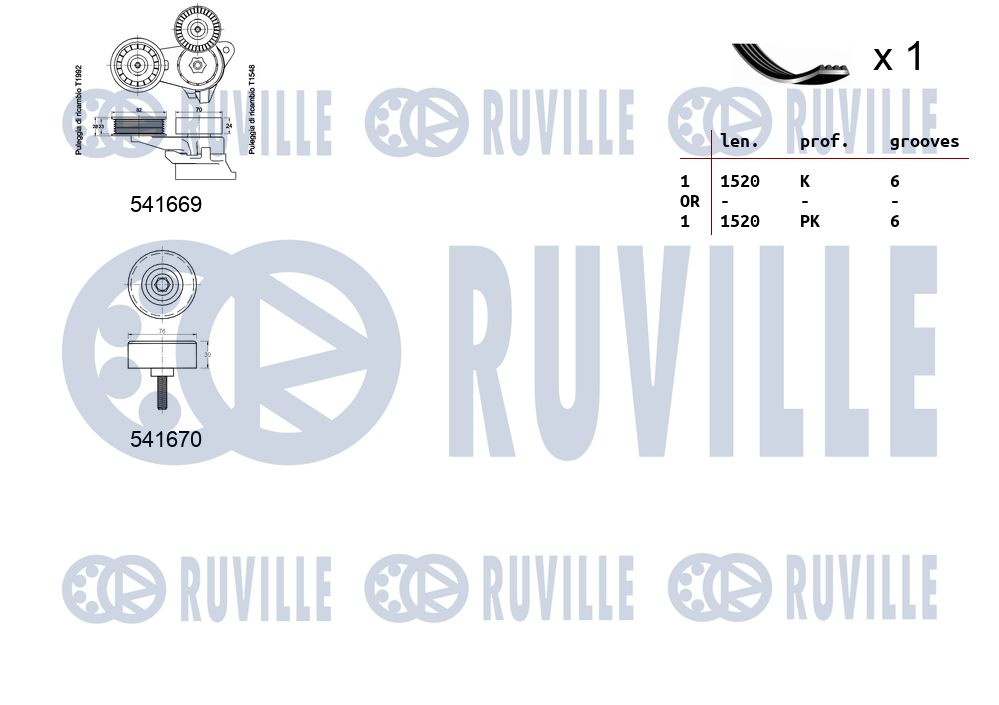 Аналоги і збігаються кодиКомплект поліклинових ременів 570066 RUVILLE