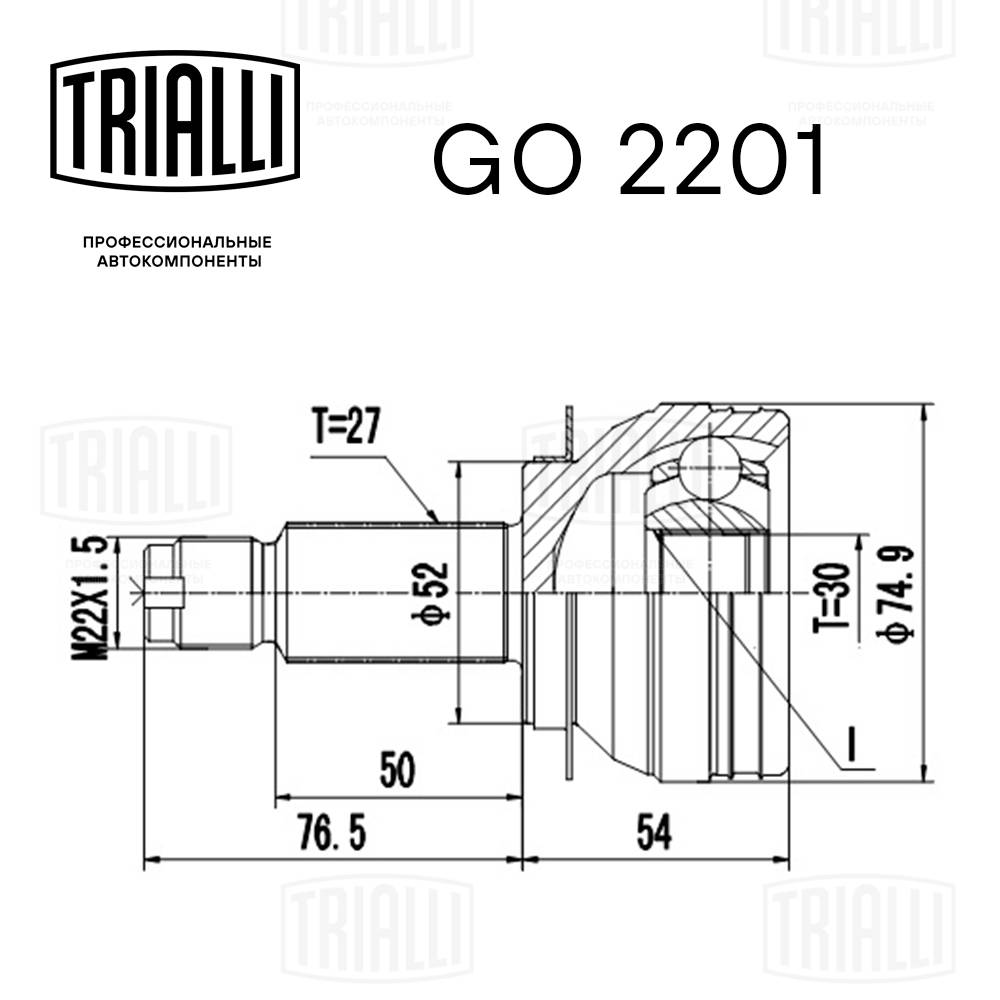 Технічні характеристикиКомплект шарнірів, приводний вал GO 2201 TRIALLI