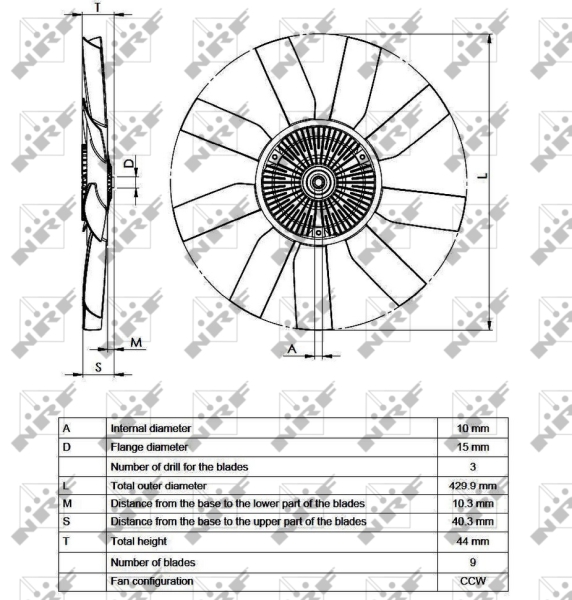 Технічні характеристикиМуфта, вентилятор радіатора 49543 NRF