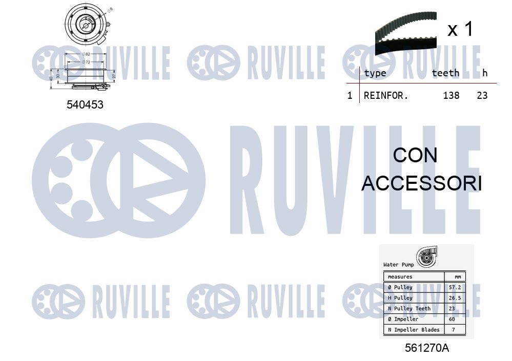 Технічні характеристикиВодяний насос + зубчастий ремінь 5500131 RUVILLE