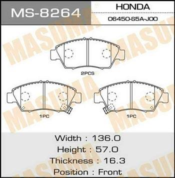 | MASUMA | Колодки тормозные AN-376WK, NP8005, P28023 передн HONDA JAZZ IV (MS-8264) MASUMA MS8264 MASUMA | 48 часов | 10 шт. | 863 грн. | |||