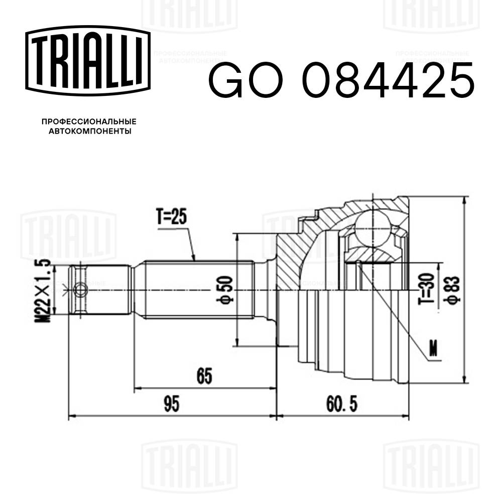 Технические характеристикиШарнирный комплект, приводной вал GO 084425 TRIALLI