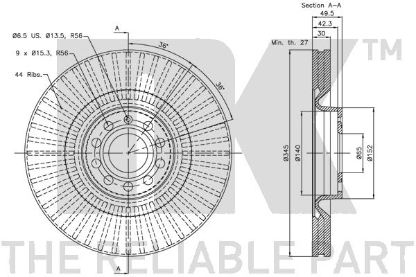 Технические характеристикиТормозной диск 314786 NK
