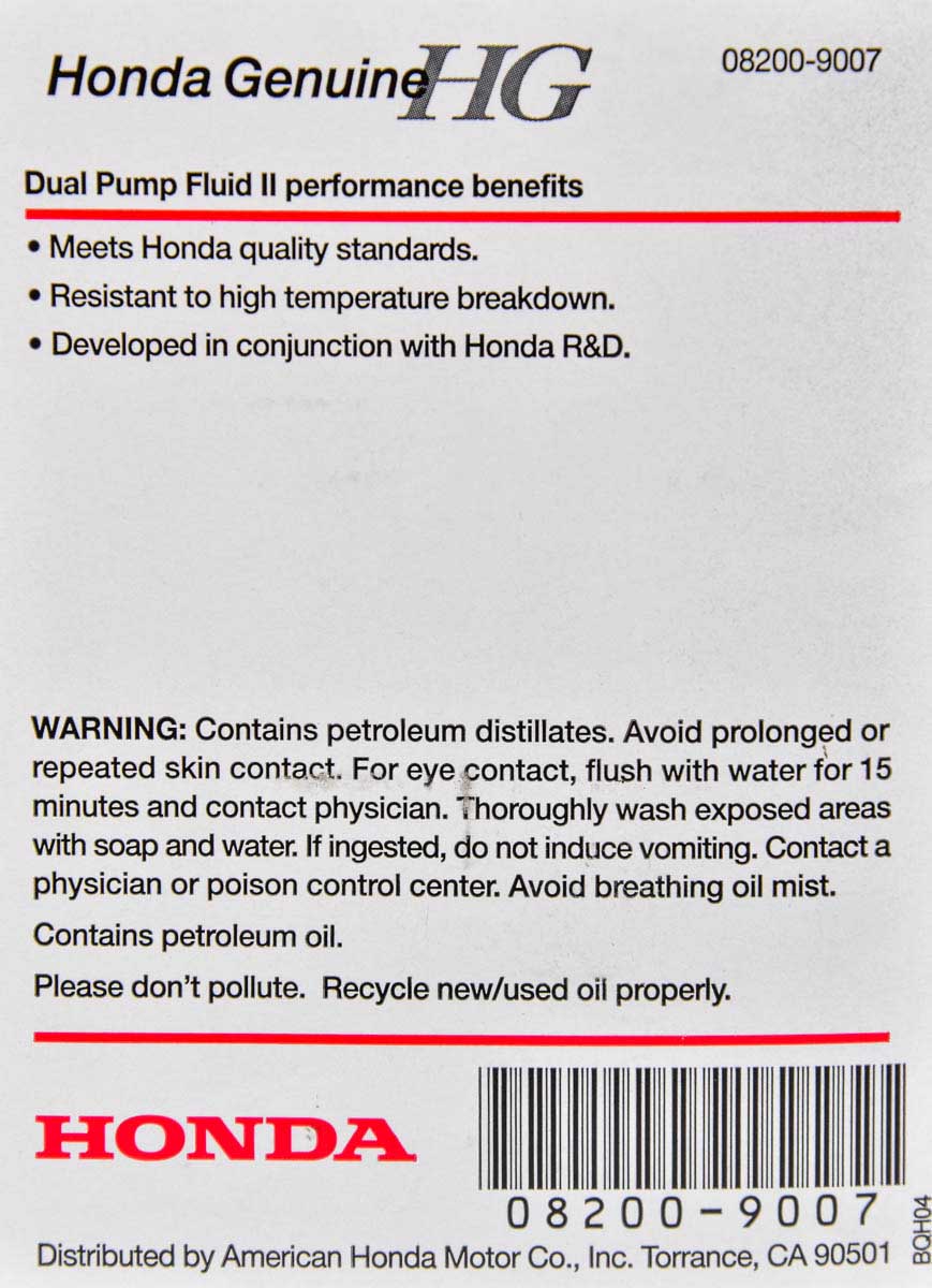 Технические характеристикиТрансмісійна олива 082009007 HONDA