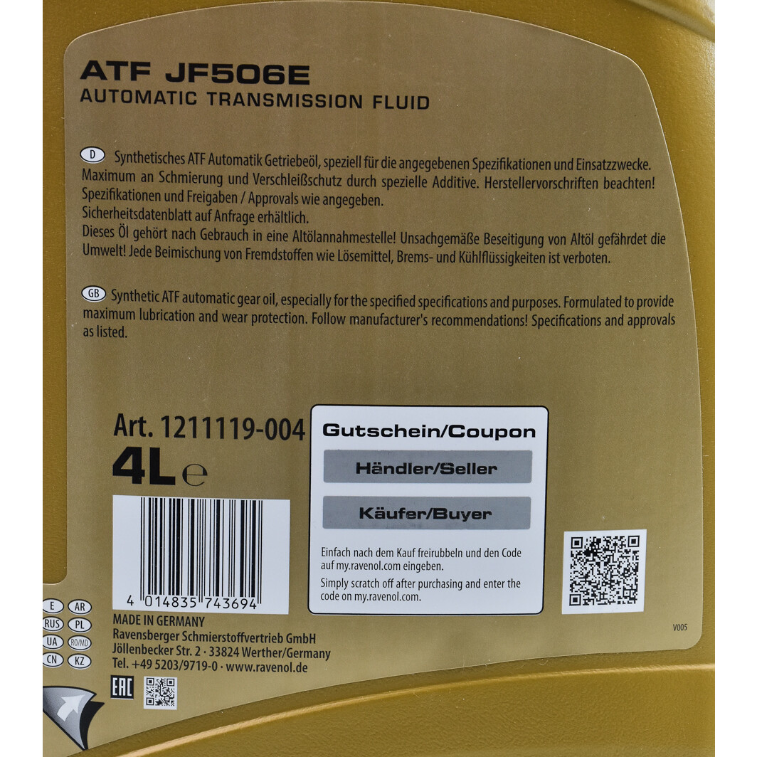Технические характеристикиТрансмісійна олива 1211119004 RAVENOL